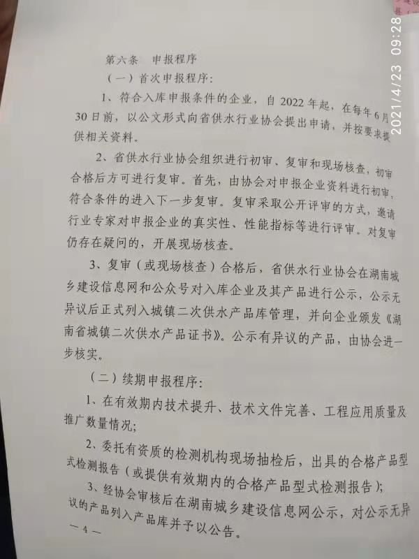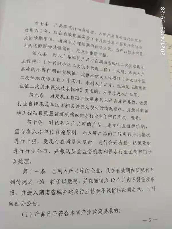 关于印发《湖南省城镇二次供水产品库管理 办法(试行)》的通知